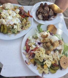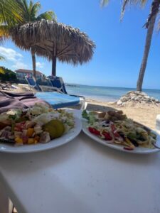 We enjoyed jerk chicken several times for lunch while on our vacation. In fact, the location of the jerk chicken hut was usually directly behind our beach chairs, which gave us the opportunity for lunch under the umbrellas and palm trees. Once again, I cannot emphasize enough, how convenient and easy everything is at this resort! For instance, we would get a plate of jerk chicken to share and also make a salad from the salad bar at the Coral Cafe buffet for our lunch. We could easily make our plates and walk them back to the beach chairs to enjoy lunch without interrupting our beach day.